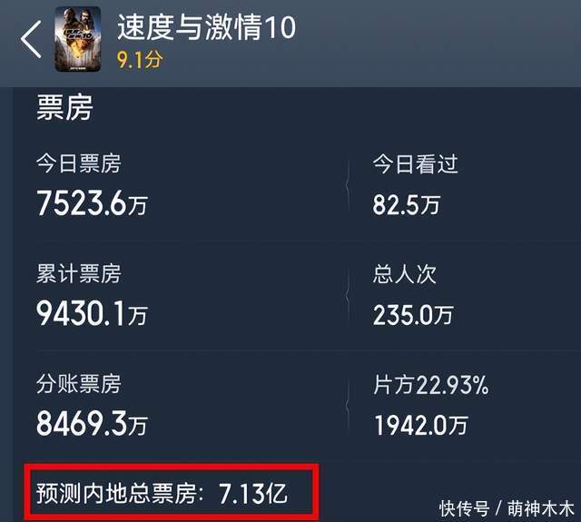 只是比较较《速率与情谊9》一日破3亿的票房盛况,《速率与情谊10》照旧有了点英杰死路的兴味,上映于今口碑依然出炉,南北极分化严重,购票平台似乎也不看好《速激10》后续票房,只是给出了7.13亿的票房意象。